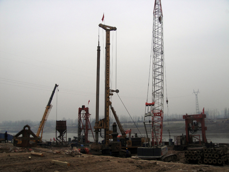 江漢六橋的2#、3#、4#墩臺基樁。每個(gè)橋墩分別采用兩個(gè)承臺承重,灌注樁皆為嵌巖樁,樁徑為1.8m與2.2m,樁長90~110m,本工程共計(jì)46根鉆孔灌注樁,完成混凝土灌注方量20000余方。