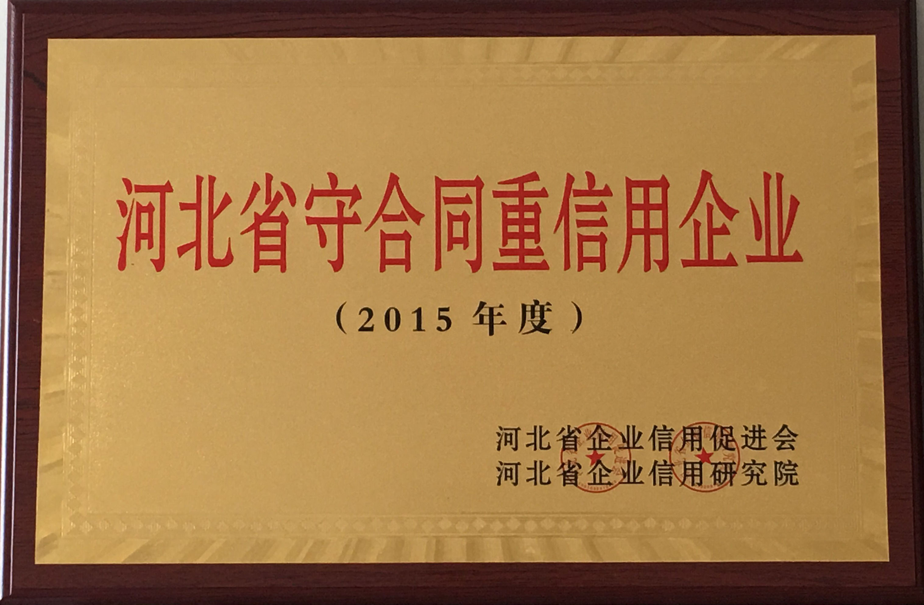 根據(jù)河北省文明辦、河北省企業(yè)信用促進(jìn)會印發(fā)的《“善行河北·誠信企業(yè)”主題實(shí)踐活動(dòng)實(shí)施方案》,河北省企業(yè)信用促進(jìn)會、河北省企業(yè)信用研究院對“守合同重信用”企業(yè)進(jìn)行認(rèn)定,我公司被授予2015年度河北省守合同重信用企業(yè)稱號。