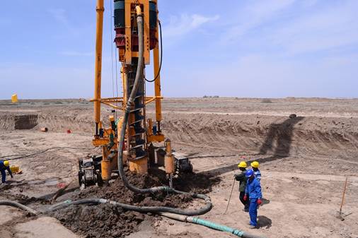 本期工程地處石河子市121團團部東北約1公里處。該場地東西長351米,南北寬約220米。廠址地勢平坦開闊。我單位主要承擔(dān)該工程地基處理施工任務(wù),主要包括: 主廠房、冷卻塔、煙囪等部位的降水工程、CFG樁、土方開挖、樁頭破除、褥墊層施工及戈壁料換填任務(wù)。公司共完成42929.27m3土方開挖,直徑400mm的CFG樁2868根,約4754.87m³混凝土,6306.71 m3戈壁料換填墊層施工以及全場區(qū)的降水工程。