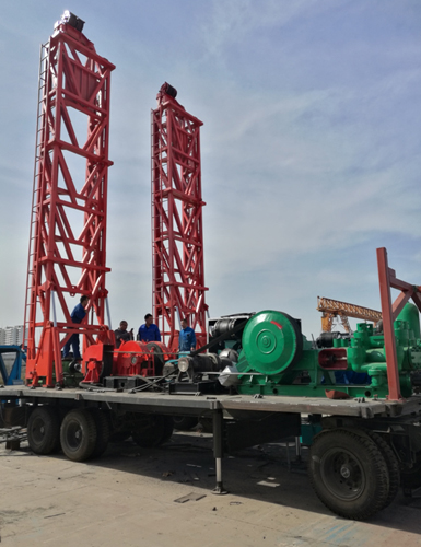 6、鉆機采用模塊化結(jié)構(gòu)設(shè)計,具有可獨立使用的轉(zhuǎn)盤部分、變速箱卷揚部分、動力部分、泥漿循環(huán)系統(tǒng)、拖車部分、鉆塔部分。具有配套齊全、結(jié)構(gòu)緊湊的設(shè)計特色。該鉆機于2014年3月19日獲得國家實用新型專利,2015年2月13日獲得河北省建設(shè)行業(yè)科學(xué)技術(shù)進步一等獎,并獲得河北省科學(xué)技術(shù)進步獎三等獎。