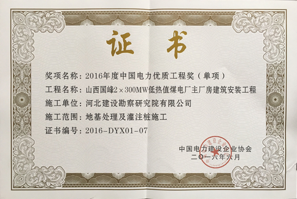 近日,我公司承建的山西國(guó)峰2x300MW低熱值煤綜合利用電廠項(xiàng)目獲得2016年度中國(guó)電力優(yōu)質(zhì)工程獎(jiǎng)。公司領(lǐng)導(dǎo)早在項(xiàng)目施工期間就高度關(guān)注此項(xiàng)目的評(píng)優(yōu)工作,對(duì)工程施工質(zhì)量、工程資料整理要求極為嚴(yán)格,項(xiàng)目施工結(jié)束后,積極配合中國(guó)電力建設(shè)企業(yè)協(xié)會(huì)完成工程獎(jiǎng)申報(bào)資料預(yù)審、現(xiàn)場(chǎng)復(fù)查等各項(xiàng)程序,最終入選中國(guó)電力優(yōu)質(zhì)工程獎(jiǎng)。