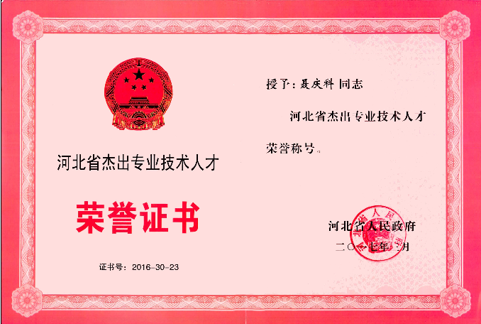 近日,經(jīng)河北省人民政府批準(zhǔn),公司總工程師聶慶科同志榮獲“河北省杰出專業(yè)技術(shù)人才” 榮譽(yù)稱號(hào)。