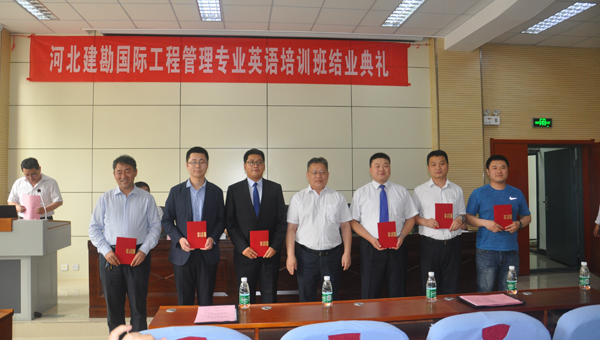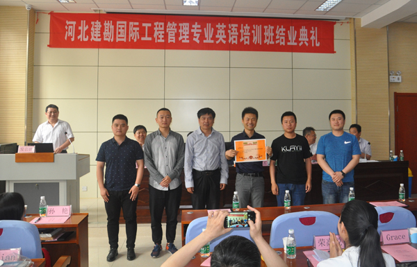公司委托石家莊鐵道大學(xué)繼續(xù)教育學(xué)院舉辦的首屆國(guó)際工程管理專(zhuān)業(yè)英語(yǔ)培訓(xùn)班(共29人,分6組),經(jīng)過(guò)28天的緊張培訓(xùn),已經(jīng)完成全部課程的學(xué)習(xí)。2018年5月14日下午,石家莊鐵道大學(xué)第九實(shí)驗(yàn)室103教室,書(shū)聲瑯瑯,掌聲雷鳴,公司首屆國(guó)際工程管理專(zhuān)業(yè)英語(yǔ)培訓(xùn)班結(jié)業(yè)典禮在這里舉行,出席結(jié)業(yè)典禮的有:公司總經(jīng)理李華偉、總工程師聶慶科、人力資源部主任張軍旗及全體學(xué)員;石家莊鐵道大學(xué)副校長(zhǎng)陳進(jìn)杰、繼續(xù)教育學(xué)院院長(zhǎng)王書(shū)海、繼續(xù)教育學(xué)院副院長(zhǎng)楊杰、外語(yǔ)系黨支部書(shū)記林治華、外語(yǔ)系副主任李玉潔、培訓(xùn)班班主任孫艷以及教師和助教。
