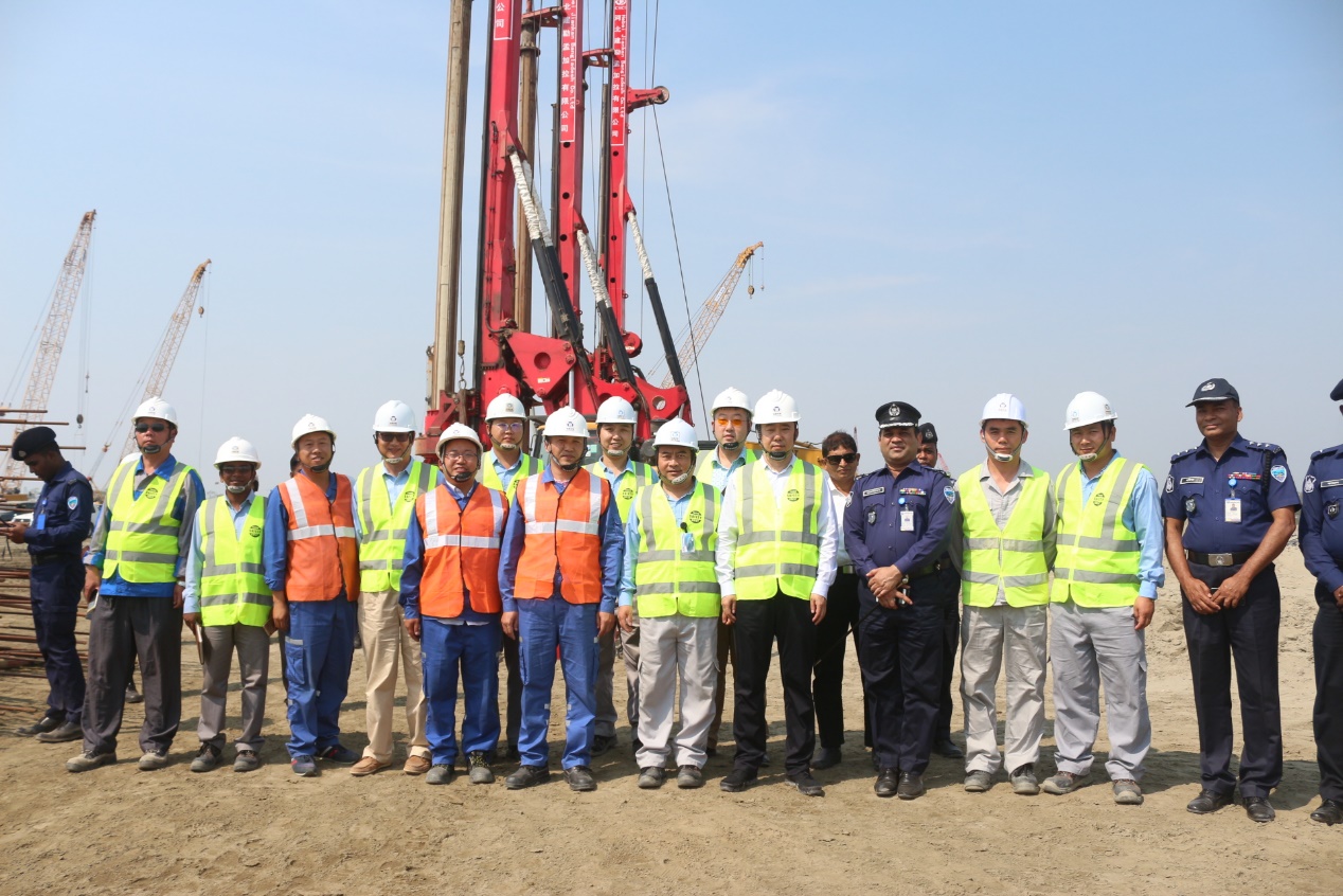 2019年2月23日,駐孟加拉國特命全權(quán)大使張佐蒞臨我公司孟加拉吉大港艾薩拉姆超超臨界燃煤機組樁基工程施工現(xiàn)場進行視察。公司駐孟加拉辦事處主任李福來、項目經(jīng)理丁偉和EPC總包單位山東電建三公司部分員工以及吉大港市警察局最高警司全程陪同。