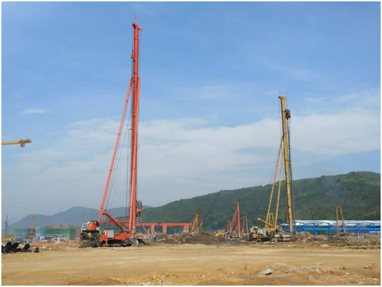 本工程2017年6月30日開始施工,于2018年2月7日竣工,共計完成樁徑500mm,樁長22m-35m,樁數(shù)5212根,混凝土強度為C25,混凝土方量29432m³。高峰期時投入長螺旋鉆機7臺套,挖掘機3臺。