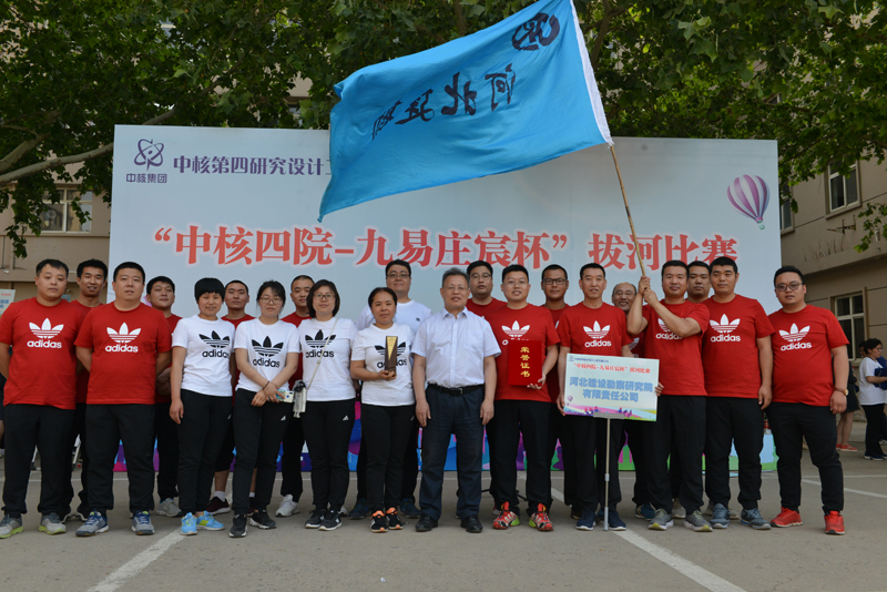 2019年5月31日,為慶祝建國七十周年,充分展現(xiàn)勘察設計行業(yè)建設成就和行業(yè)風采,由石家莊市工程勘察咨詢業(yè)協(xié)會主辦、中核第四研究院設計工程有限公司和河北九易莊宸科技股份有限公司承辦的“中核四院-九易莊宸杯”拔河比賽,在中核第四研究設計工程有限公司院內(nèi)正式拉開帷幕。我公司總經(jīng)理李華偉參加了開幕式并作了熱情洋溢的講話。