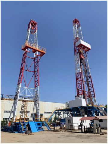 2.TSJ2000/660型水井鉆機(jī)配套K31-90/1.0型鉆塔,采用起塔大繩導(dǎo)輪結(jié)構(gòu)起塔,帶緩沖氣缸、死繩固定器、指重表,整體為無(wú)繃?yán)K結(jié)構(gòu)設(shè)計(jì),結(jié)合埃塞俄比亞沒(méi)有吊車的現(xiàn)場(chǎng)條件,整套鉆塔可用14噸隨車吊進(jìn)行安裝并完成起塔。