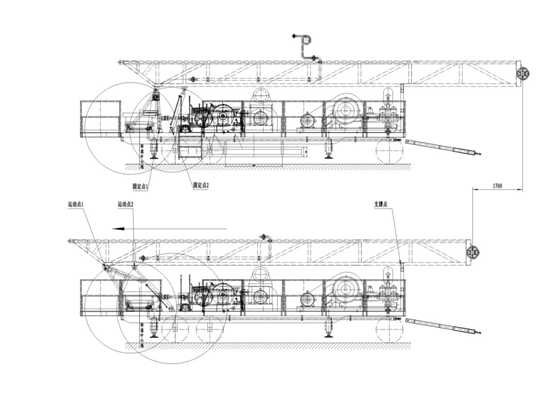 該型鉆機(jī)鉆塔通過液壓起塔油缸可整體橫向移動1760mm,使得鉆機(jī)在移動和運(yùn)輸狀態(tài)時布局均勻,成功解決了拖車鉆機(jī)鉆塔“前短后長”的弊病。該型水井鉆機(jī)轉(zhuǎn)盤使用∅670mm通徑轉(zhuǎn)盤,轉(zhuǎn)盤輸入軸連接盤按JN162萬向軸連接尺寸加工,帶液壓活門機(jī)構(gòu),底盤兩側(cè)安裝柵格網(wǎng)底板。井口活門采用液壓驅(qū)動,在井口活門上安裝兩個開合油缸,推動井口活門開合,有效降低了操作者的勞動強(qiáng)度,使用方便可靠。
