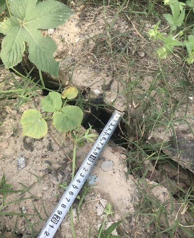 對壩體頂部地面裂縫進行封閉,封閉可采用二八灰土,并夯實處理,防止降雨入滲使得裂縫進一步擴展,并在坡頂設(shè)置排水溝,防止進一步入滲。