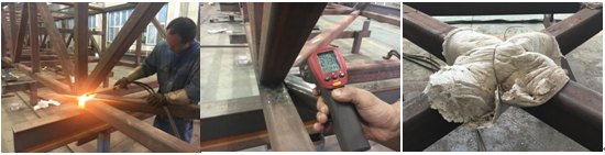 4、焊后保溫:進(jìn)行150~200℃+兩小時(shí)焊后加熱后,包裹石棉布進(jìn)行緩慢冷卻。