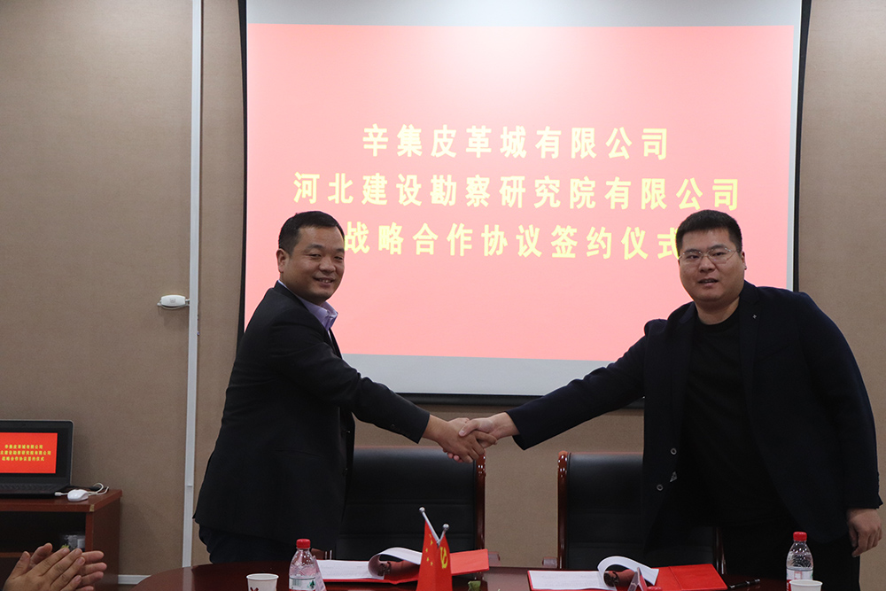 11月1日,陽光和煦,微風送爽,秋意正濃,河北建設(shè)勘察研究院有限公司同辛集皮革城集團有限公司戰(zhàn)略合作協(xié)議簽約儀式,在辛集國際皮革城盛大舉行。