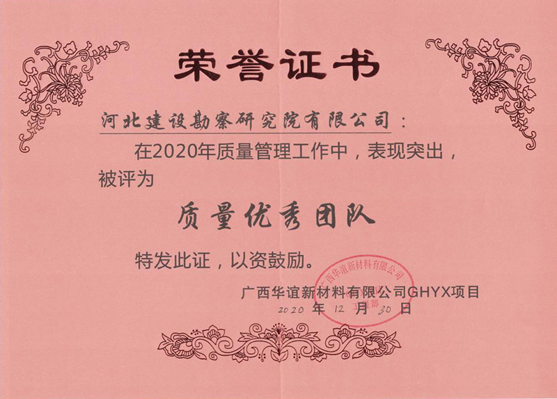 為此,廣西華誼新材料有限公司GHYX項目工程部特發(fā)來表揚信,并授予我項目管理團隊“質量優(yōu)秀團隊”、“HSE優(yōu)秀團隊”榮譽稱號,對四名先進個人予以嘉獎。