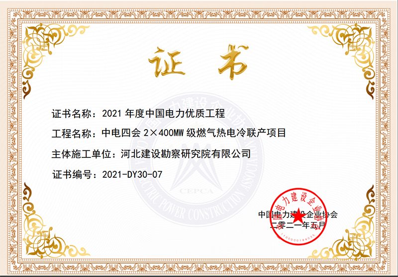 近日,中國電力建設(shè)企業(yè)協(xié)會公布了2021年度中國電力優(yōu)質(zhì)工程評審結(jié)果,我公司作為中電四會2×400MW級燃?xì)鉄犭娎渎?lián)產(chǎn)項(xiàng)目主體施工單位,榮獲2021年度中國電力行業(yè)優(yōu)質(zhì)工程獎。
