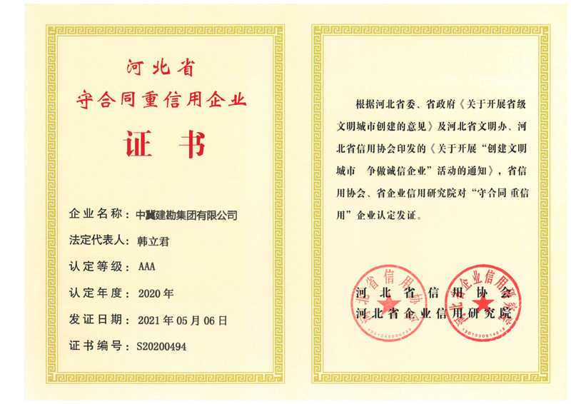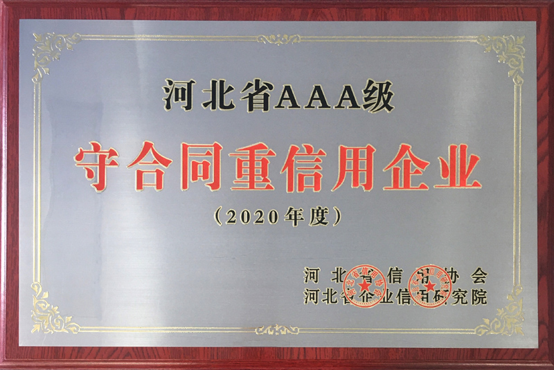 根據(jù)河北省信用辦、河北省信用協(xié)會(huì)等七部門(mén)印發(fā)的《關(guān)于開(kāi)展“推進(jìn)誠(chéng)信建設(shè)共建信用河北”的活動(dòng)方案》的通知,河北省信用協(xié)會(huì)、河北省企業(yè)信用研究院對(duì)“守合同重信用”企業(yè)進(jìn)行認(rèn)定,我公司繼續(xù)被評(píng)定為“河北省AAA級(jí)守合同重信用企業(yè)”。