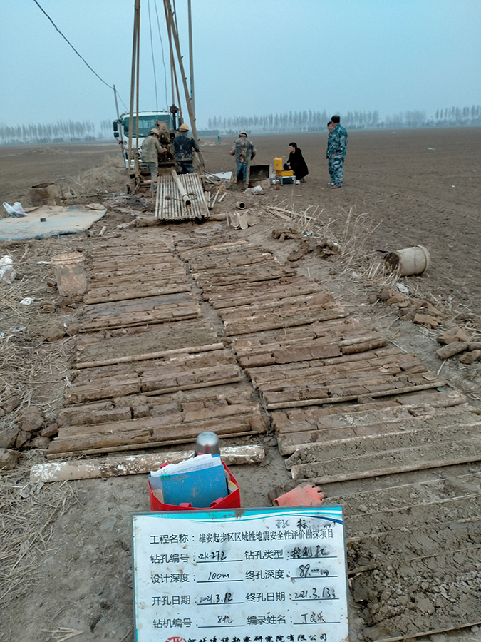 受河北省震災(zāi)風險防治中心委托,我公司承擔了雄安新區(qū)起步區(qū)部分場地勘察工作。項目部通過合理的資源調(diào)配及部署,圓滿的完成了本次勘察任務(wù)??辈觳捎昧爽F(xiàn)場鉆探、原位測試、室內(nèi)試驗、動力參數(shù)測試相結(jié)合的方法,查明了新區(qū)起步區(qū)的地層空間分布,對場地的場地類別,地震液化情況進行了分區(qū)。并提供了場地土層的地震動參數(shù),為地震三維建模計算提供了科學(xué)可靠的數(shù)據(jù)。