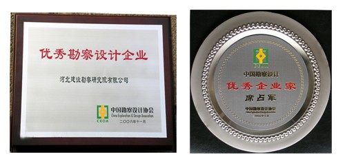 我公司喜獲中國勘察設計協(xié)會頒發(fā)的“優(yōu)秀勘察設計企業(yè)”榮譽稱號,董事長席占軍獲“優(yōu)秀企業(yè)家”稱號。