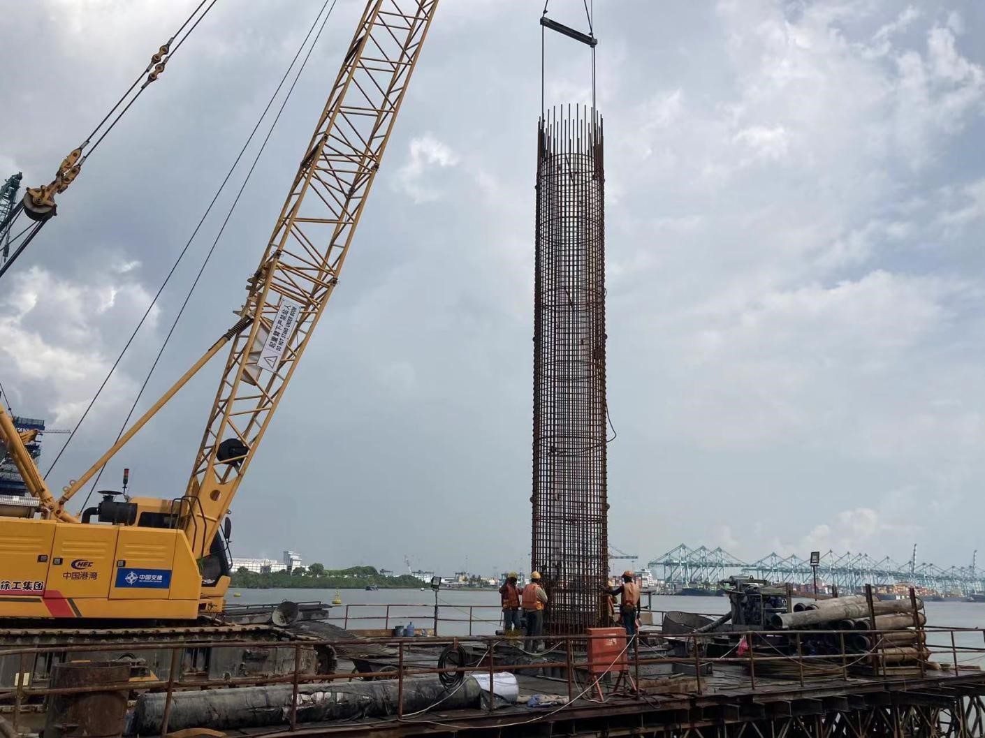 本工程LNG儲(chǔ)罐工程樁采用“樁柱一體化成型”施工技術(shù),簡稱高承臺(tái)樁;灌注樁樁徑1.4m,樁長約17m;柱子直徑1.4m、柱高1.5m,柱頂鋼筋露出自然地面約2.7m;本儲(chǔ)罐共布置高承臺(tái)灌注樁263根,樁端進(jìn)入持力層深度≥2m,樁身柱子砼強(qiáng)度等級(jí)為C50。