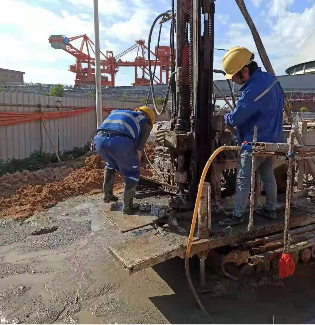 本工程建設(shè)地點(diǎn)位于廣東省汕尾市,受陸豐寶麗華新能源電力有限公司委托,我公司承擔(dān)本項(xiàng)目樁基施工。工程量包括Φ1000mm的灌注樁80根、Φ700mm的高壓旋噴樁樁80根。灌注樁為嵌巖樁,混凝土強(qiáng)度等級(jí)為C30,設(shè)計(jì)要求嵌入中風(fēng)化巖層,且嵌巖深度不小于1D,且樁長(zhǎng)不小于15m。高壓旋噴樁樁體有效直徑700mm,有效樁長(zhǎng)不小于9m,同時(shí)滿足樁底標(biāo)高達(dá)到強(qiáng)風(fēng)化花崗巖面。