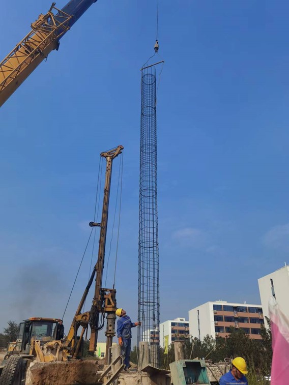 本項(xiàng)目位于河北邯鄲永年縣,受河北永洋特鋼集團(tuán)有限公司委托,我公司承擔(dān)本項(xiàng)目樁基施工。基礎(chǔ)采用混凝土灌注樁,工程內(nèi)容為全套管旋挖機(jī)械成孔、清運(yùn)余土(渣土)、鋼筋籠制作及安放、混凝土澆筑、鑿樁頭、清運(yùn)及場地平整。工作量為樁徑800mm混凝土灌注樁174根。
