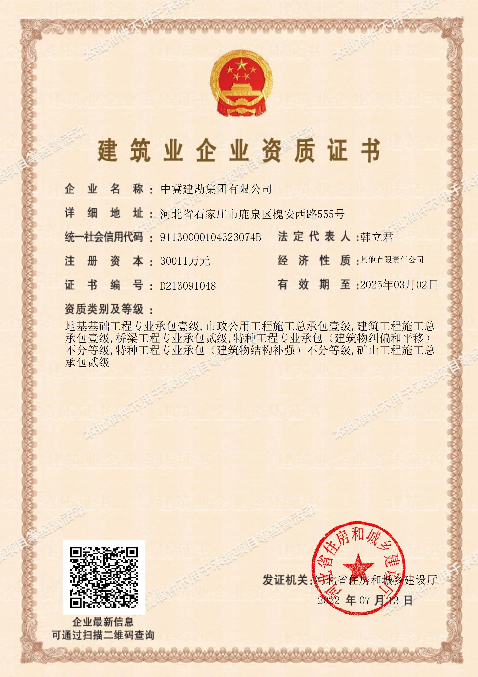 在集團(tuán)公司領(lǐng)導(dǎo)的運(yùn)籌帷幄下,經(jīng)過(guò)近半年的不懈努力,集團(tuán)公司于2022年7月13日喜獲建筑工程施工總承包壹級(jí)資質(zhì),該資質(zhì)的取得將有力促進(jìn)我公司建筑施工總承包業(yè)務(wù)開(kāi)展,對(duì)公司轉(zhuǎn)型升級(jí)、地方市場(chǎng)開(kāi)拓將起到重要作用,為公司持續(xù)穩(wěn)定發(fā)展奠定更加堅(jiān)實(shí)的基礎(chǔ)。