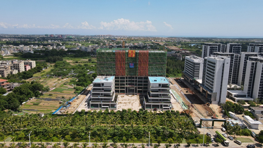 海南辦公樓占地面積15畝,地下二層,地上12層,總建筑面積47527平方米。工程自2021年9月13日現(xiàn)場(chǎng)舉辦開(kāi)工儀式以來(lái),經(jīng)過(guò)11個(gè)月的合力攻堅(jiān),克服高溫、臺(tái)風(fēng)、疫情等重重難關(guān),如期實(shí)現(xiàn)了一個(gè)個(gè)關(guān)鍵節(jié)點(diǎn):2021年10月25日第一根基礎(chǔ)工程樁混凝土灌注順利完成;2021年12月4日開(kāi)始8萬(wàn)方土方開(kāi)挖的任務(wù);2022年1月29日,實(shí)現(xiàn)了基礎(chǔ)筏板的澆筑;2022年4月10日,完成了地下二層車(chē)庫(kù)施工,主體如期“沖”出正負(fù)零;2022年6月24日,東、西配樓主體按計(jì)劃日期封頂。如今項(xiàng)目迎來(lái)了主體封頂?shù)睦锍瘫?,為后期工程?shù)立了標(biāo)桿!