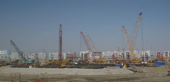 我公司采用泵吸反循環(huán)鉆機成孔施工工藝,共完成樁徑1.0m,樁長76.6-98.75m工程樁271根,制作安裝鋼筋籠約4600t。該工程創(chuàng)造了幾項國家和世界之最:民用建筑工程樁水下澆筑混凝土之最:C55;民用建筑工程樁鋼筋規(guī)格之最:直徑50mm三級鋼;民用建筑工程樁長細比之最:121:1。本工程樁孔垂直度要求控制在1/200以內(nèi),采用100%超聲波檢測,施工中制定了預(yù)防孔斜技術(shù)措施,保證了成孔質(zhì)量。