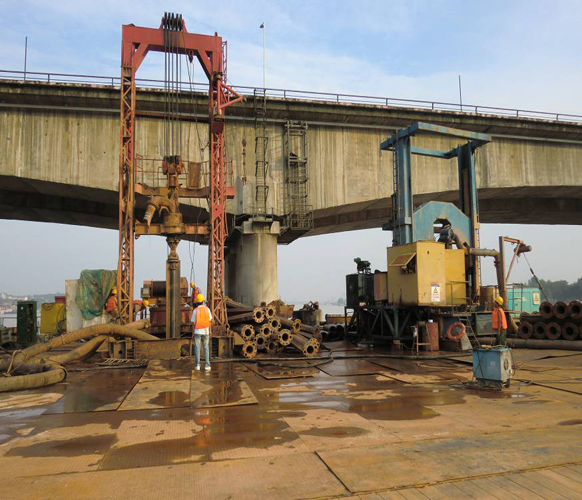本工程是石長鐵路的復線工程,橋址位于湖南省常德市。施工時間為2010年5月31日至2010年12月31日。采用GF300、ZSD300型回轉鉆機、TR400C旋挖鉆機及YCJF-250型沖擊反循環(huán)鉆機成孔,泥漿護壁工藝。共完成Φ1.8m~Φ2.5m基樁38根,混凝土灌注量8000余方。