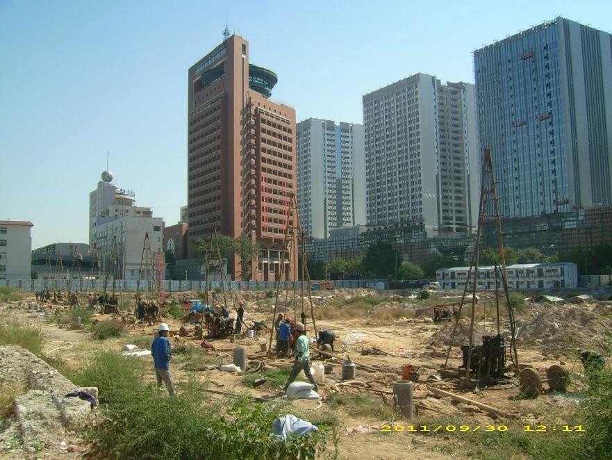 擬建場(chǎng)地基巖面起伏較大,巖溶地質(zhì)條件復(fù)雜,基巖內(nèi)溶洞、裂隙發(fā)育。溶洞最大高度為9.7m,對(duì)勘察揭露的空洞、半充填溶洞及破碎帶采用先充填粗骨料后注漿治理方法;對(duì)嵌巖樁采用“一樁一探、探治結(jié)合”;根據(jù)巖溶治理方案專家論證評(píng)審意見,對(duì)對(duì)原古采煤巷道采用鉆探與物探相結(jié)合的方法。利用鉆探孔直接在巷道平面位置及周邊進(jìn)行巷道探查,利用井下電視、井間CT、淺層地震和瞬變電磁物探手段進(jìn)行驗(yàn)證,同時(shí)對(duì)遠(yuǎn)年采空區(qū)進(jìn)行了探查驗(yàn)證并進(jìn)行了治理。2012年4月22日,專家評(píng)審驗(yàn)收意見為:提供的巖溶地基治理竣工資料齊全、內(nèi)容較全面,滿足巖溶地基治理工程竣工驗(yàn)收評(píng)審要求;檢測(cè)單位采用了鉆探及面波等檢測(cè)方法可靠;巖溶地基治理效果達(dá)到了設(shè)計(jì)要求,同意通過竣工驗(yàn)收評(píng)審。
