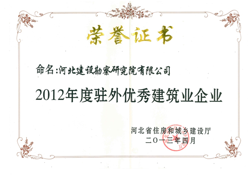 4月26日,河北省住房和城鄉(xiāng)建設廳發(fā)布冀建市[2013]8號文件,對2012年度在工程質量安全管理等方面作出突出成績的駐外建筑業(yè)企業(yè)和個人進行表彰。其中,我公司被命名為2012年度駐外優(yōu)秀建筑業(yè)企業(yè),祁建永、劉雙辰、史曉楠、陳玉國被命名為2012年度駐外優(yōu)秀項目經(jīng)理。