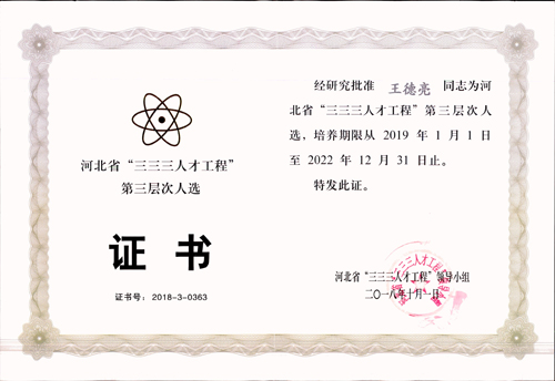 經(jīng)公司推薦,石家莊市人力資源和社會保障局組織評審,報河北省“三三三人才工程”領(lǐng)導(dǎo)小組批準(zhǔn)、地下工程公司王德亮榮獲河北省“三三三人才工程”第三層次人選。