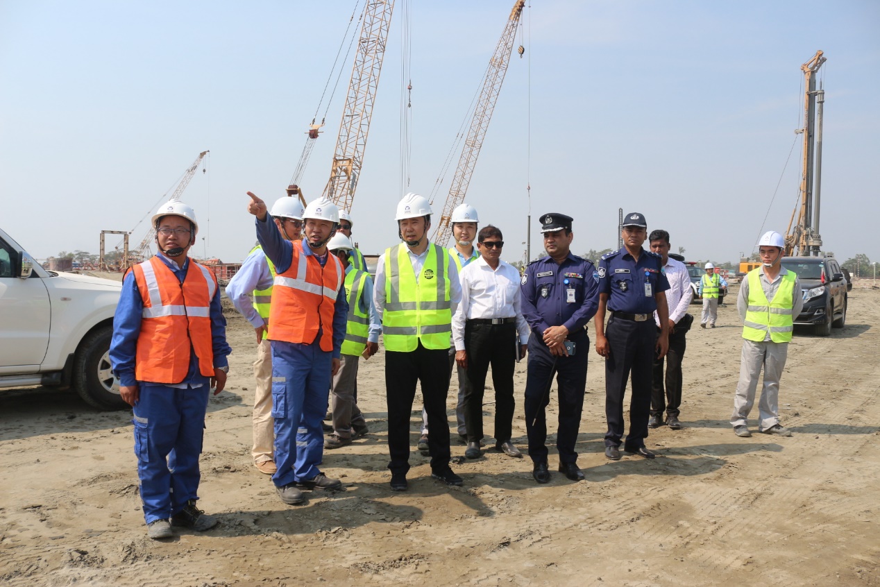2019年2月23日,駐孟加拉國特命全權(quán)大使張佐蒞臨我公司孟加拉吉大港艾薩拉姆超超臨界燃煤機組樁基工程施工現(xiàn)場進行視察。公司駐孟加拉辦事處主任李福來、項目經(jīng)理丁偉和EPC總包單位山東電建三公司部分員工以及吉大港市警察局最高警司全程陪同。