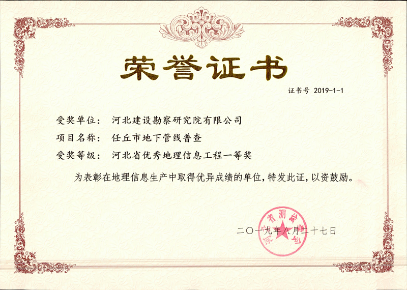 近日,由我公司完成的“任丘市地下管線普查項目”榮獲河北省測繪學會優(yōu)秀地理信息工程一等獎,“江蘇大唐國際呂四港有限責任公司廠區(qū)沉降觀測”、“浙江大唐烏沙山發(fā)電廠主要建(構)筑物沉降觀測”項目榮獲河北省測繪學會優(yōu)秀地理信息工程二等獎。