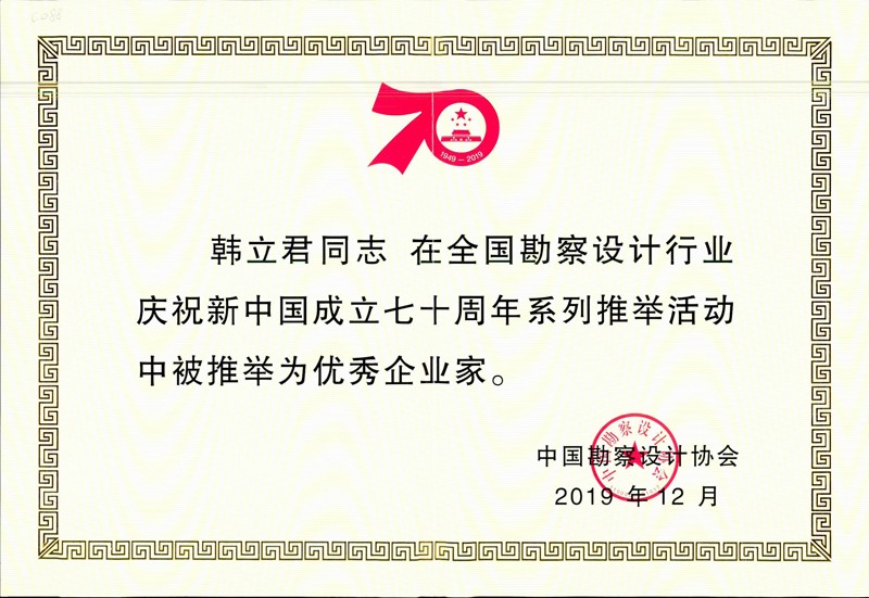 為慶祝中華人民共和國(guó)成立70周年,展示新中國(guó)成立70年來全國(guó)勘察設(shè)計(jì)行業(yè)為國(guó)家經(jīng)濟(jì)和社會(huì)發(fā)展作出的巨大貢獻(xiàn)以及行業(yè)取得的輝煌成就,2019年12月11日,中國(guó)勘察設(shè)計(jì)協(xié)會(huì)在廣州召開了全國(guó)勘察設(shè)計(jì)同業(yè)協(xié)會(huì)共慶新中國(guó)成立70周年大會(huì)暨中國(guó)勘察設(shè)計(jì)協(xié)會(huì)六屆二次會(huì)員代表大會(huì)。會(huì)上,發(fā)布了全國(guó)勘察設(shè)計(jì)行業(yè)新中國(guó)成立70年系列推舉榜單,538個(gè)項(xiàng)目、214家企業(yè)、185位企業(yè)家、168位科技工作者、118位行業(yè)人士、52家協(xié)會(huì)、83位協(xié)會(huì)工作者分別榮獲了系列推舉活動(dòng)的各項(xiàng)榮譽(yù)稱號(hào)。