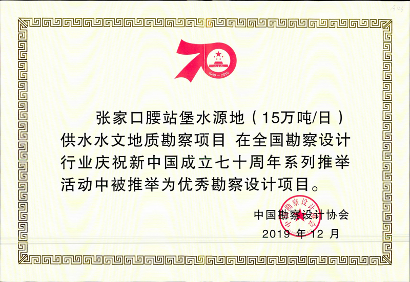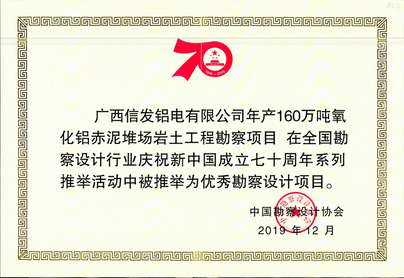 其中,我公司榮獲“優(yōu)秀勘察設(shè)計(jì)企業(yè)”榮譽(yù)稱號(hào),董事長(zhǎng)韓立君榮獲“優(yōu)秀企業(yè)家”稱號(hào),總工程師聶慶科榮獲“科技創(chuàng)新帶頭人”榮譽(yù)稱號(hào)。我公司完成的張家口腰站堡水源地(15萬噸/日)供水水文地質(zhì)勘察項(xiàng)目、廣西信發(fā)鋁電有限公司年產(chǎn)160萬噸氧化鋁赤泥堆場(chǎng)巖土工程勘察項(xiàng)目被推舉為優(yōu)秀勘察設(shè)計(jì)項(xiàng)目。