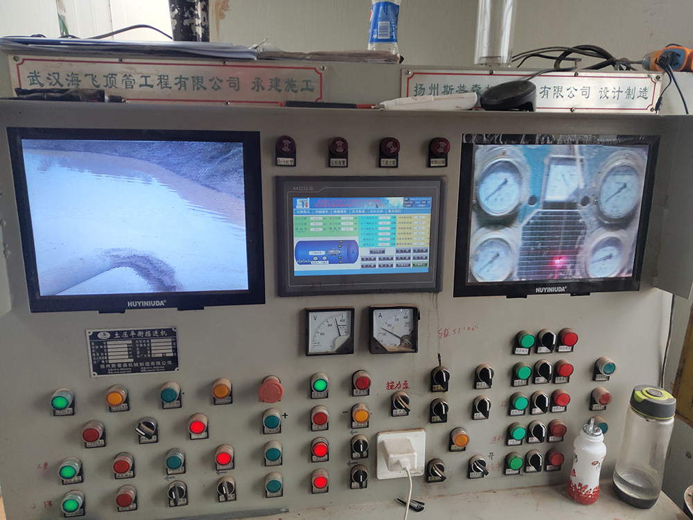 頂進(jìn)用工作井頂進(jìn)設(shè)備進(jìn)行速度控制,分為兩個部分,機(jī)頭入洞階段要嚴(yán)格控制速度,此階段重點是找正管子中心、高程,偏差控制在±5mm之內(nèi),所以速度不要太快。