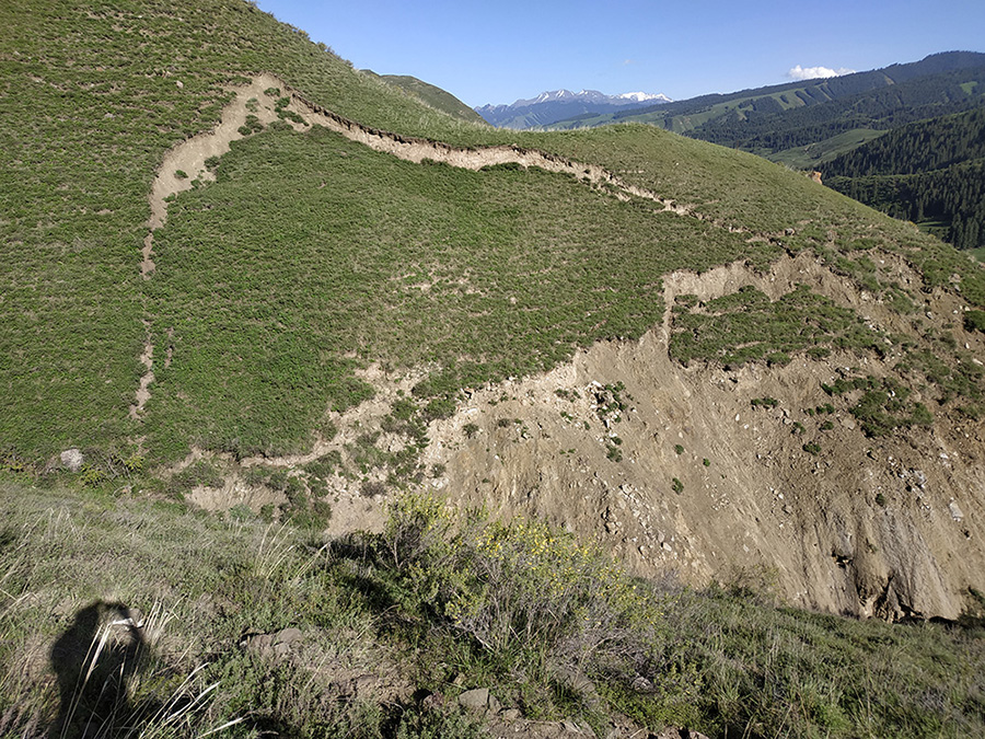 山體滑坡:白楊溝豐源煤礦生產(chǎn)調(diào)度樓北側(cè)邊坡出現(xiàn)了滑坡,滑坡體表面巖土體松散,在降雨條件下有進(jìn)一步發(fā)生滑坡的可能?;缕履_下有安全生產(chǎn)調(diào)度樓等建(構(gòu))筑物,如果再次發(fā)生滑坡,會(huì)危及生產(chǎn)調(diào)度樓及其周圍建筑物的人員生命和財(cái)產(chǎn)安全,因此需要對(duì)該滑坡進(jìn)行勘查及治理,保證人員生命和財(cái)產(chǎn)安全。