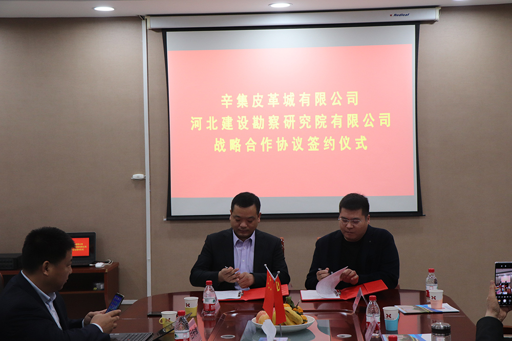11月1日,陽光和煦,微風送爽,秋意正濃,河北建設(shè)勘察研究院有限公司同辛集皮革城集團有限公司戰(zhàn)略合作協(xié)議簽約儀式,在辛集國際皮革城盛大舉行。