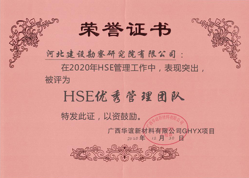 為此,廣西華誼新材料有限公司GHYX項目工程部特發(fā)來表揚信,并授予我項目管理團隊“質量優(yōu)秀團隊”、“HSE優(yōu)秀團隊”榮譽稱號,對四名先進個人予以嘉獎。