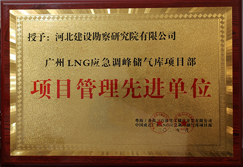 近日,由我公司承建的廣州LNG應(yīng)急調(diào)峰儲氣庫項目樁基工程,榮獲粵海番禺石油化工儲運有限公司以及中國成達廣州LNG應(yīng)急調(diào)峰儲氣庫項目部聯(lián)合頒發(fā)的“項目管理先進單位”的榮譽獎牌。