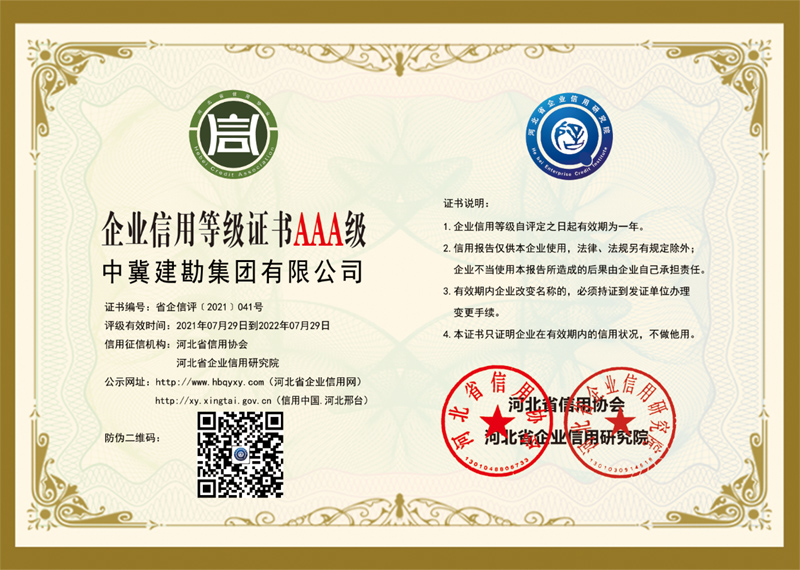 根據(jù)河北省信用辦、河北省信用協(xié)會(huì)等七部門(mén)印發(fā)的《關(guān)于開(kāi)展“推進(jìn)誠(chéng)信建設(shè)共建信用河北”的活動(dòng)方案》的通知,河北省信用協(xié)會(huì)、河北省企業(yè)信用研究院對(duì)“守合同重信用”企業(yè)進(jìn)行認(rèn)定,我公司繼續(xù)被評(píng)定為“河北省AAA級(jí)守合同重信用企業(yè)”。