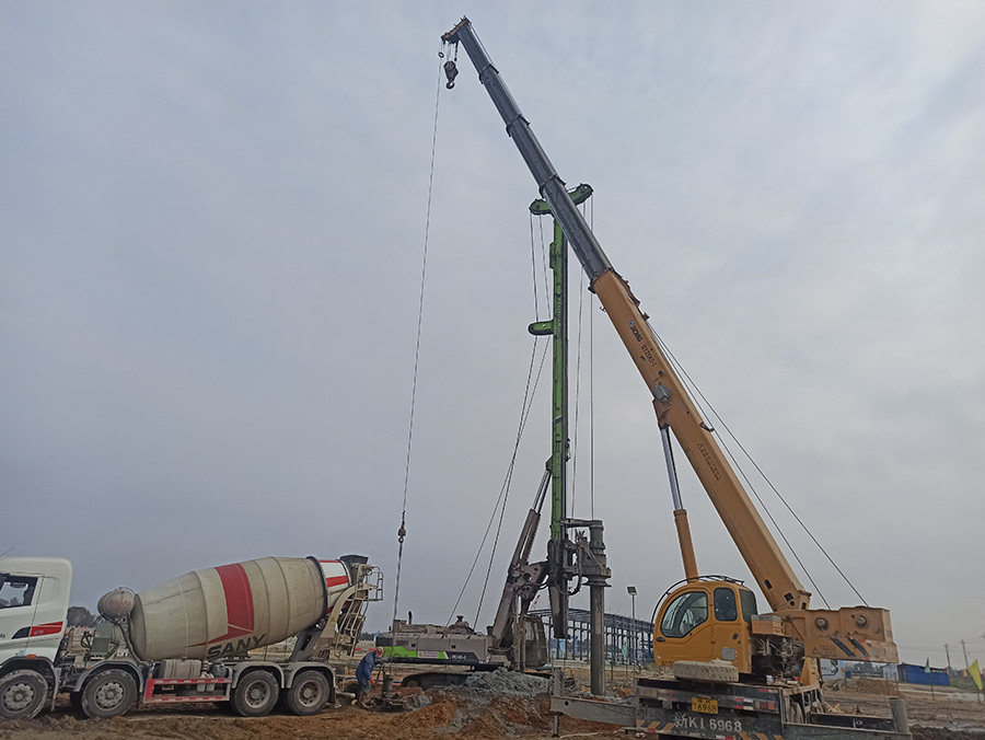 本項(xiàng)目一體化罐區(qū)化工原料產(chǎn)品罐區(qū)樁基工程,設(shè)計(jì)為CFG樁,樁徑為500mm,樁長(zhǎng)為12m,共1054根,工程量2483.43m³;液氨罐組樁基工程,采用樁徑800mm旋挖成孔灌注樁,基樁分類為端承樁。樁長(zhǎng)為36-39m,共88根,工程量1616m³;