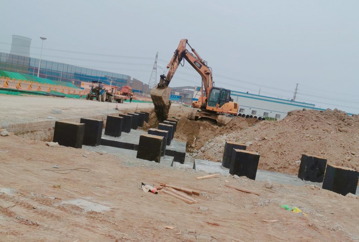 該項(xiàng)目主要為獨(dú)立基礎(chǔ)施工,局部地基較軟,需要換填級配砂石處理,以保證地基不發(fā)生沉降。如何確保大體積混凝土施工不產(chǎn)生裂縫為該項(xiàng)目難點(diǎn)和重點(diǎn)。在業(yè)主的配合及我公司成員的努力下,該項(xiàng)目自2021年03月16日開工,2021年10月8日竣工驗(yàn)收完成,歷時206天,質(zhì)量驗(yàn)收合格,順利完工。