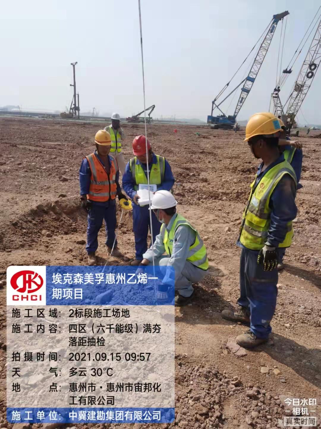 本工程位于廣東省惠州市。受埃克森美孚(惠州)化工有限公司委托,我公司承擔(dān)強(qiáng)夯施工項(xiàng)目。本項(xiàng)目主要施工內(nèi)容為現(xiàn)場(chǎng)夯點(diǎn)的布置、現(xiàn)場(chǎng)夯點(diǎn)的測(cè)放、夯機(jī)的就位、夯坑的驗(yàn)收及夯坑的回填、滿夯的控制、滿夯后整個(gè)場(chǎng)地的整平及驗(yàn)收。其中4000KN·m強(qiáng)夯面積27866㎡,6000KN·m強(qiáng)夯面積334533㎡,8000KN·m強(qiáng)夯面積32090㎡。