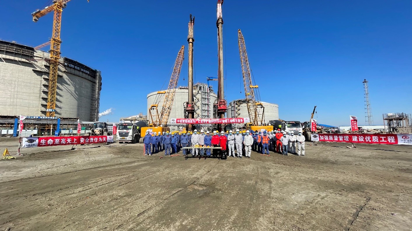 本項目位于江蘇省啟東市,由廣匯能源綜合物流發(fā)展有限責(zé)任公司投資建設(shè),我公司承擔(dān)本項目樁基施工。樁基為鋼筋混凝土灌注樁,罐下布置400根樁,樁間距最小距離為3.025m,樁徑均為1200mm。施工采用樁柱一體化施工工藝,成孔采用旋挖鉆機成孔。共計施工完成400根樁,于2021年10月25日開工,完工時間為2022年01月25日,實際工期完成情況滿足合同工期要求。