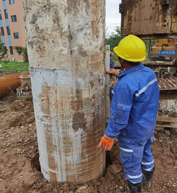 本項(xiàng)目位于河北邯鄲永年縣,受河北永洋特鋼集團(tuán)有限公司委托,我公司承擔(dān)本項(xiàng)目樁基施工。基礎(chǔ)采用混凝土灌注樁,工程內(nèi)容為全套管旋挖機(jī)械成孔、清運(yùn)余土(渣土)、鋼筋籠制作及安放、混凝土澆筑、鑿樁頭、清運(yùn)及場地平整。工作量為樁徑800mm混凝土灌注樁174根。