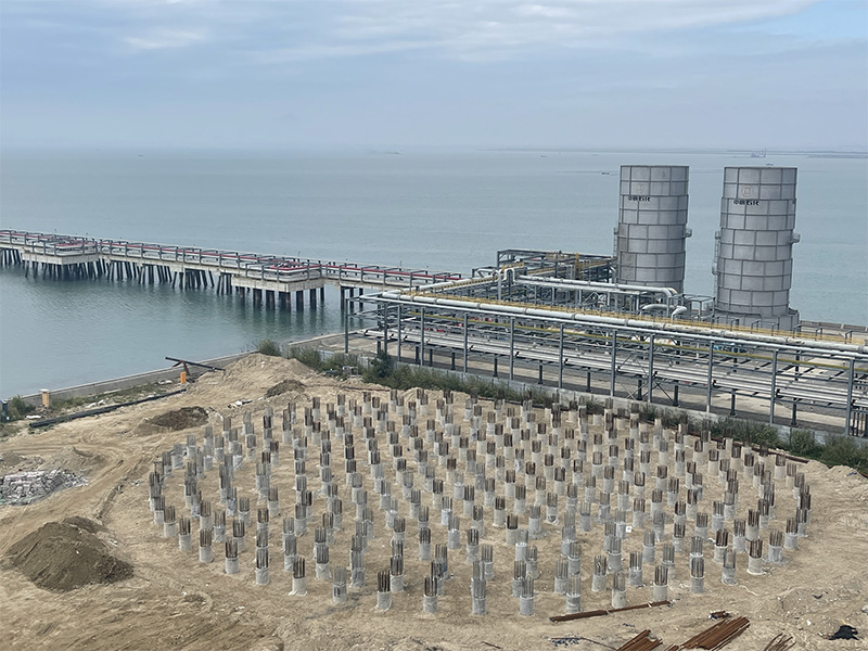 本項(xiàng)目位于福建省福清市,由福建中民新能源有限公司投資建設(shè)。我公司承擔(dān)本項(xiàng)目?jī)蓚€(gè)10萬(wàn)m³預(yù)應(yīng)力低溫混凝土丙烷儲(chǔ)罐的樁基施工。采用地下樁與地上短柱一次施工成型工藝,每個(gè)儲(chǔ)罐有旋挖鉆孔灌注樁 292 根,樁型為 C40φ1.2m 旋挖鉆孔灌注樁(后壓漿法),單樁豎向抗壓極限承載力為 15000KN,入土樁長(zhǎng)47m。