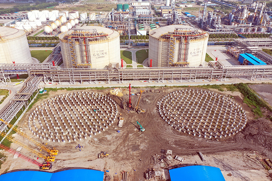 本工程主要工作內(nèi)容為24萬立方米丙烷罐擴建項目的樁基施工,本工程采用樁柱一體化施工,灌注樁樁徑1.2m,樁長約67m,共計540余根。