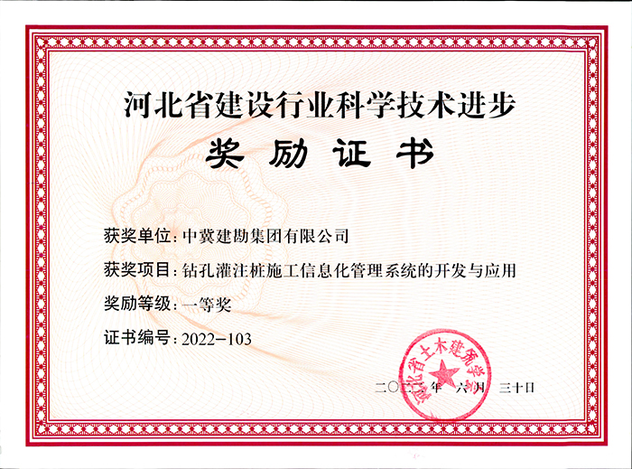 一等獎(jiǎng)1項(xiàng):鉆孔灌注樁施工信息化管理系統(tǒng)的開(kāi)發(fā)與應(yīng)用
