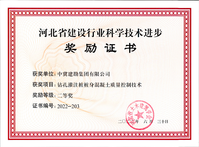 二等獎(jiǎng)1項(xiàng):鉆孔灌注樁樁身混凝土質(zhì)量控制技術(shù)