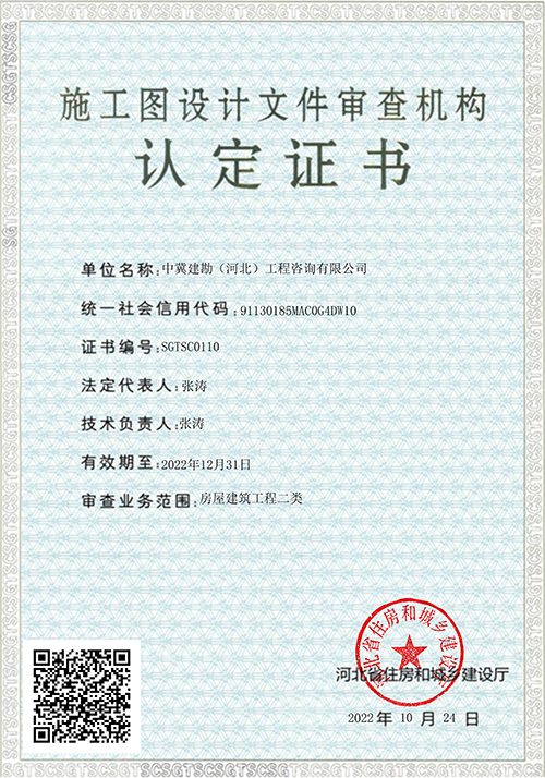 我公司全資控股子公司——中冀建勘(河北)工程咨詢有限公司,于2022年10月24日取得施工圖設(shè)計(jì)文件審查機(jī)構(gòu)認(rèn)定證書(shū),可承接二級(jí)及以下房屋建筑工程的施工圖審查業(yè)務(wù)。隨著施工圖設(shè)計(jì)文件審查機(jī)構(gòu)認(rèn)定證書(shū)的取得,為我們進(jìn)一步積極開(kāi)展市場(chǎng)經(jīng)營(yíng)工作,努力將施工圖審查業(yè)務(wù)打造成為新的經(jīng)營(yíng)創(chuàng)收增長(zhǎng)點(diǎn),提供了新的契機(jī)和基礎(chǔ)。